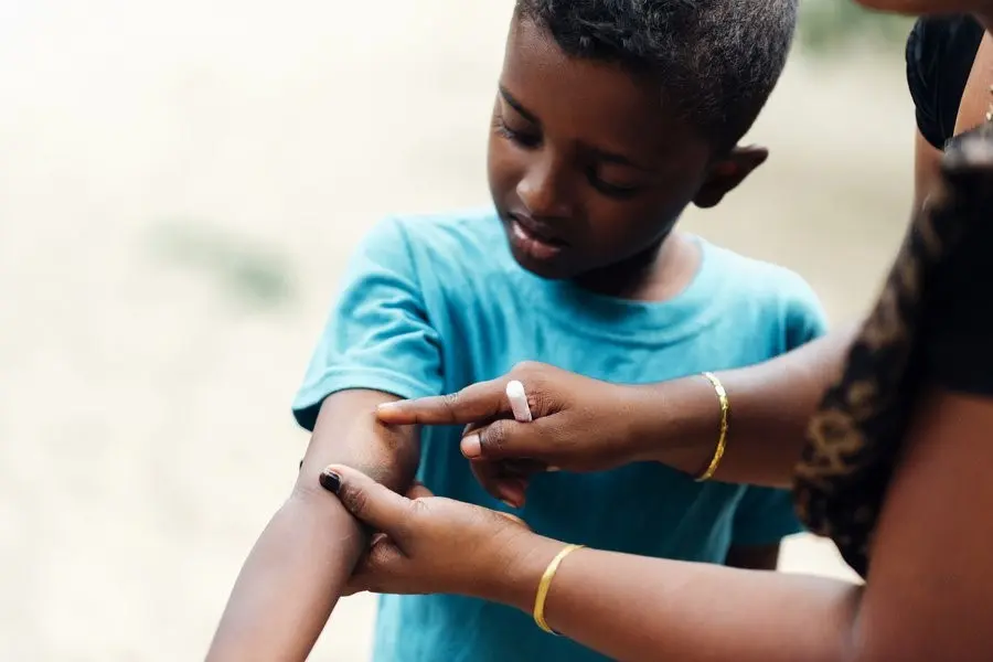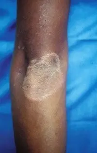 The patches are a different colour from the rest of the skin. They have no feeling if they are touched. If you notice a patch of skin like this, speak to a health worker as soon as you can.