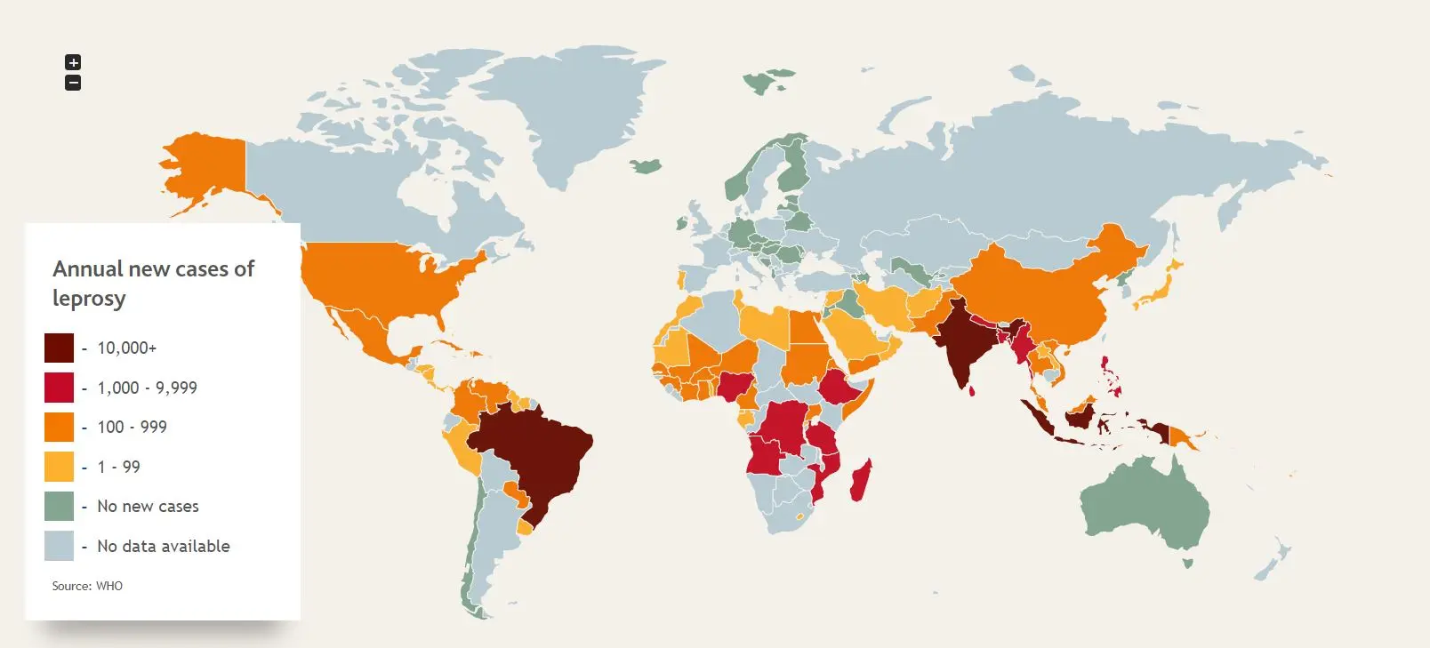 - Most cases of leprosy are found across Asia, Africa, and South America